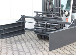 Klammergabel mit Seitenschub Baujahr: 2008 Tragkraft: 2500kg Aufnahme: FEM2 + FEM3 Gabelzinkenlänge: 1200mm Gabelzinkenbreite: 140mm Baubreite: 1140mm Vorbaumaß: 182mm Eigengewicht: 584kg ... (