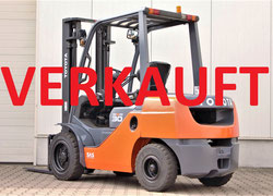 Antrieb: Diesel Baujahr: 1999 Tragkraft: 2500kg Betriebsstunden: 3343 Hubhöhe: 2250mm Bauhöhe: 4700mm Eigengewicht: 4500kg Triplexmast mit Vollfreihub, Vollkabine mit Heizung, Arbeitssche ... (