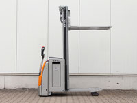 Hochhubwagen mit Initialhub Antrieb: Elektro Baujahr: 2016 Tragkraft: 1200kg Betriebsstunden: 1310 Hubhöhe: 2450mm Bauhöhe: 1700mm Gabellänge: 1150mm Eigengewicht: 920kg Batterie: 24 ... (